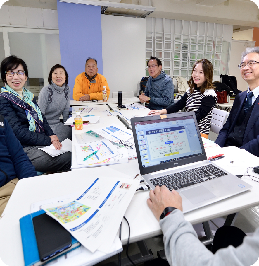 地域の中であらたな関係性をつくるために様々な課題や価値観などの情報を整理し全体の流れをみながら多様な方々が円滑に交流できるよう、縁の下の力持ちとなるサーバントリーダーの育成を目指します。